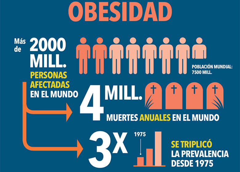 Según datos recientes, la obesidad casi se ha triplicado desde 1975 y es responsable de 4 millones de muertes en todo el mundo cada año. En 2016, más de 2.000 millones de adultos (44 %) padecían sobrepeso u obesidad, y más del 70 % de ellos vivía en países de ingreso bajo o mediano.