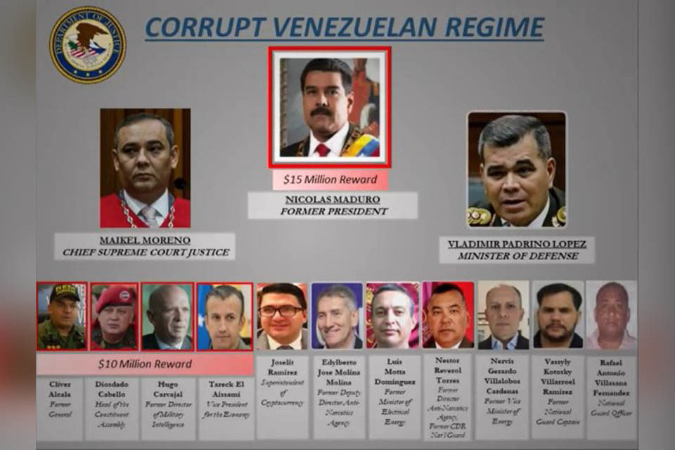 Según un expediente presentado por la Fiscalía de EE.UU., presentado el miércoles 24 de marzo, Nicolás Maduro, Diosdado Cabello, Hugo Carvajal y Clíver Alcalá son miembros del Cártel de Los Soles y tienen más de una década exportando cocaína a Centroamérica y Estados Unidos en complicidad con la Farc, el movimiento guerrilero, Fuerzas Armadas Revolucionarias de Colombia.